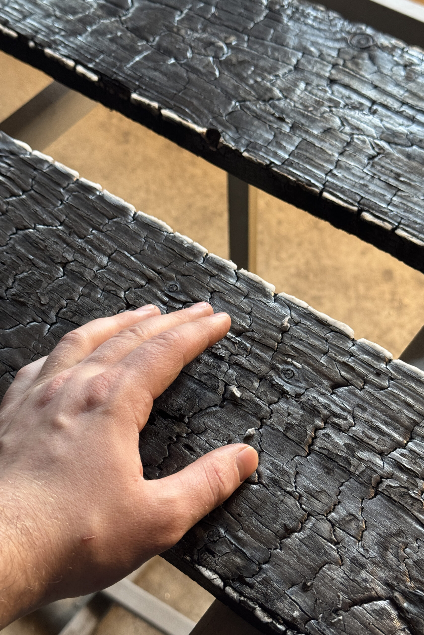 Estetyka: Proces wypalania nadaje drewnu unikalny wygląd, podkreślając jego naturalną strukturę i wzmacniając kontrast między słojami drewna.